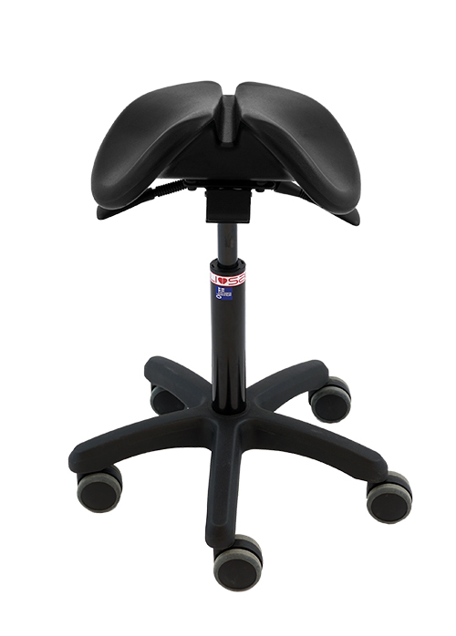 На двухраздельном стуле-седле спина остается в таком же положении, как и стоя, а поясничный лордоз поддерживается. В случае цельного седла такого не происходит: на нем возникает чрезмерное давление на область гениталий, что заставляет округлять спину. Это несет огромный вред позвонкам и дискам поясничного отдела.